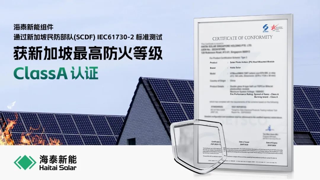 8月4日,海泰新能(835985.BJ)官微音信,海泰新能光伏组件得手通过新加坡民防部队(SCDF)IEC61730-2尺度测试,并获取新加坡最高防火等第Class A认证,实力认证公司组件居品在安全可靠性方面的上风。